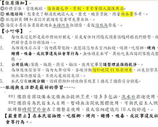 ※禁止烹煮食物、酗酒、喧嘩、轟趴或嗑藥、召妓