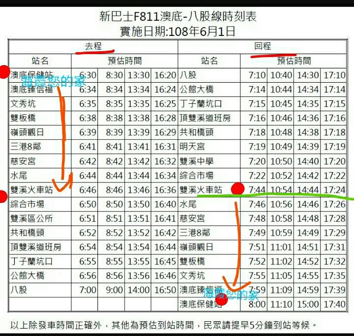 坐火車 雙溪火車站 可搭配轉社區免費bus F811 雙溪 4班 10:54 或下午14:40. 17:20